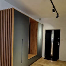 Piętro; dwie sypialnie z możliwością wykonania trzeciej w tym jedna z wyjściem na taras o pow.53m2, dwie garderoby, łazienka z wanną i prysznicem oraz wc i bidetem, przedpokój.