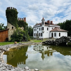 Na terenie znajdują się dwa sztuczne stawy po środku których wybudowany jest mostek.