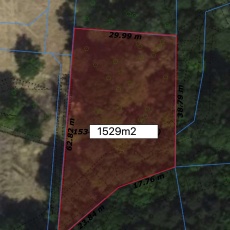 Działka o pow.1529m2 , płaska w kształcie trapezu, częściowo porośnięta drzewami