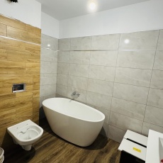 Mieszkanie sprzedawane w stanie wykończonym obejmującym: podłogi wykończone w płytkach (kolor jasny szary), kuchnia w zabudowie na wymiar wraz ze sprzętami (zmywarka 60cm, piekarnik elektryczny, płyta grzewcza, chłodziarko zamrażalka , okap, meble w zabudowie), łazienka wykończona w płytkach, wyposażona w prysznic berbrpdzikowy, toaletę , umywalkę, lustro, w pokojach na podłogach płytki, drzwi wewnętrzne i zewnętrzne, rolety elektryczne we wszystkich oknach.