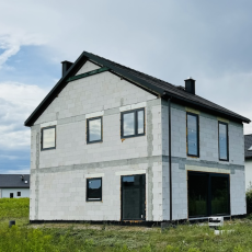 Dom sprzedawany w stanie surowym zamkniętym z oknami wraz z roletami, drzwiami wejściowymi, bramą garażową oraz dachem pokrytym dachówką!