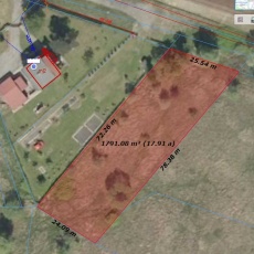Działka o pow. 1811m2, wymiary około 24×72-78m, dojazd drogą utwardzoną gminną.
