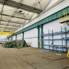 Hala wraz z biurami o pow.1636m2, w tym hala o pow.1575m2 wyposażona w dwie suwnice o udźwigu 8T, wysokość do haka suwnicy 6,8m, do sufitu hali 10-11mm.